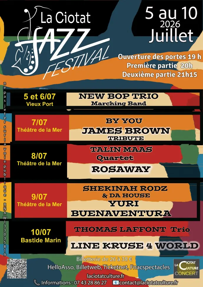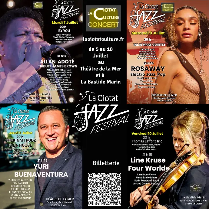 L’association ”La Ciotat Culture“ organise et soutient divers événements culturels, tels que des concerts de Jazz, le Salon du Livre et des Arts, des randonnées théâtrales, un Ciné en Plein Air, un Théâtre de poche, le Festival International de Jazz.